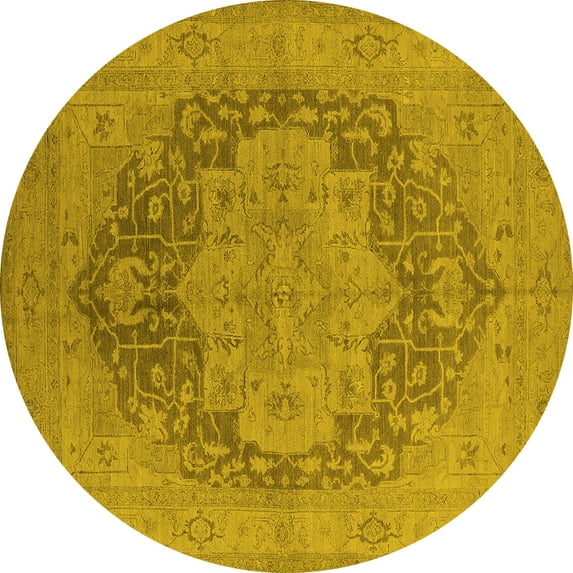 Hero image 0 of Ahgly Company Machine Washable Indoor Round Oriental Yellow Industrial Area Rugs, 6' Round, 0 of 4