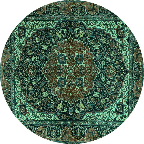 Hero image 0 of Ahgly Company Machine Washable Indoor Round Persian Turquoise Blue Traditional Area Rugs, 4' Round, 0 of 4