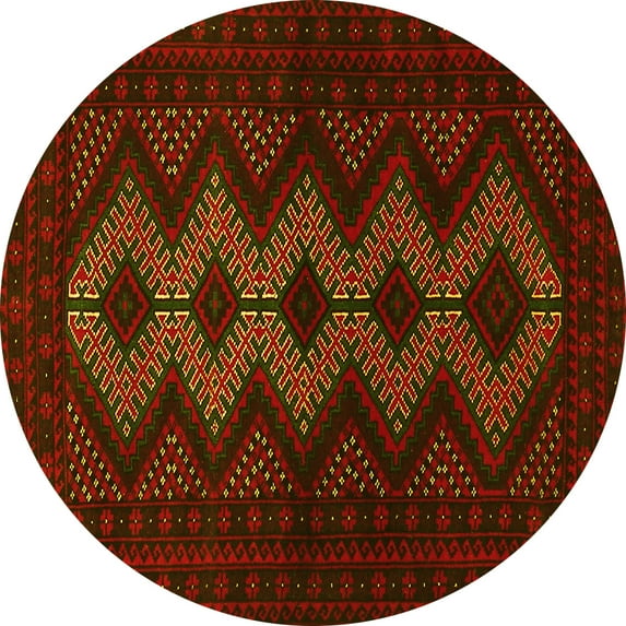 Ahgly Company Machine Washable Indoor Round Persian Yellow Traditional Area Rugs, 6' Round