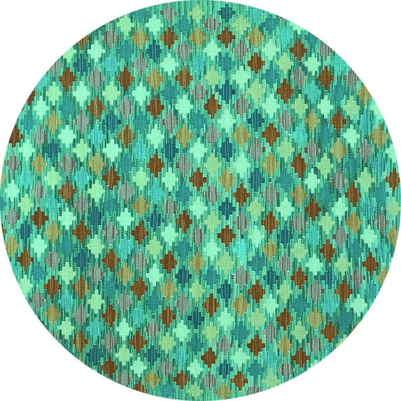 Ahgly Company Machine Washable Indoor Round Southwestern Turquoise Blue Country Area Rugs, 4' Round