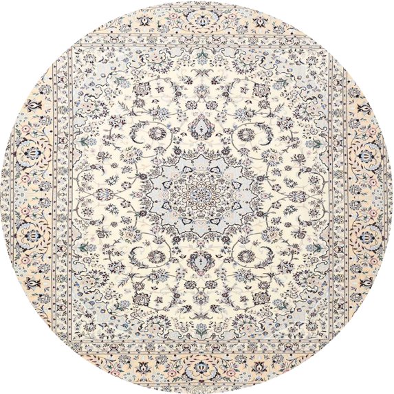 Ahgly Company Machine Washable Indoor Round Traditional Champagne Beige Area Rugs, 4' Round