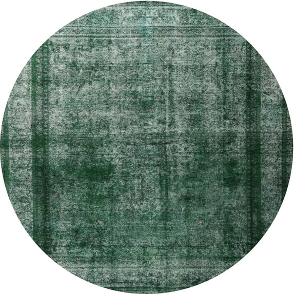 Ahgly Company Machine Washable Indoor Round Traditional Green Area Rugs, 4' Round