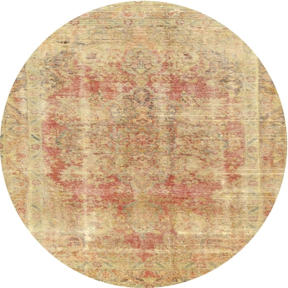 Hero image 0 of Ahgly Company Machine Washable Indoor Round Traditional Orange Area Rugs, 4' Round, 0 of 7