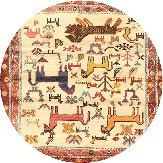 Hero image 0 of Ahgly Company Machine Washable Indoor Round Traditional Sun Yellow Area Rugs, 4' Round, 0 of 7
