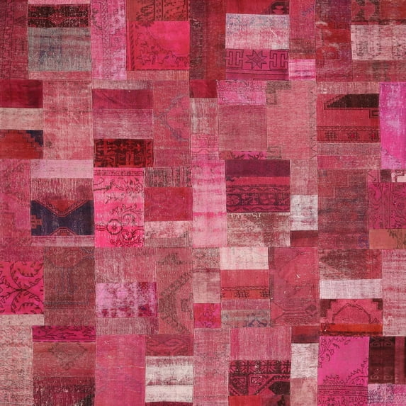Ahgly Company Machine Washable Indoor Square Contemporary Dark Pink Area Rugs, 6' Square