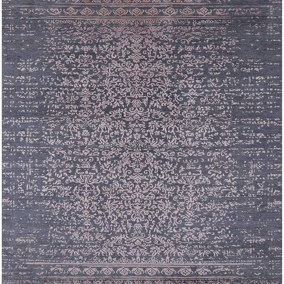 Ahgly Company Machine Washable Indoor Square Industrial Modern Purple Navy Blue Area Rugs, 3' Square