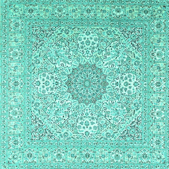 Ahgly Company Machine Washable Indoor Square Medallion Turquoise Blue Traditional Area Rugs, 7' Square