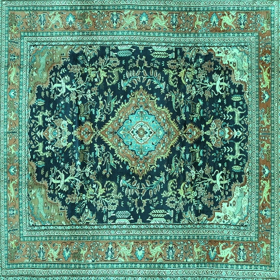 Hero image 0 of Ahgly Company Machine Washable Indoor Square Persian Turquoise Blue Traditional Area Rugs, 7' Square, 0 of 4