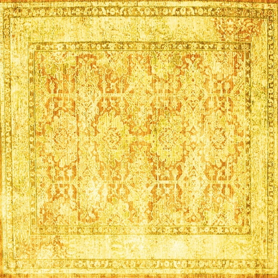 Ahgly Company Machine Washable Indoor Square Persian Yellow Traditional Area Rugs, 8' Square