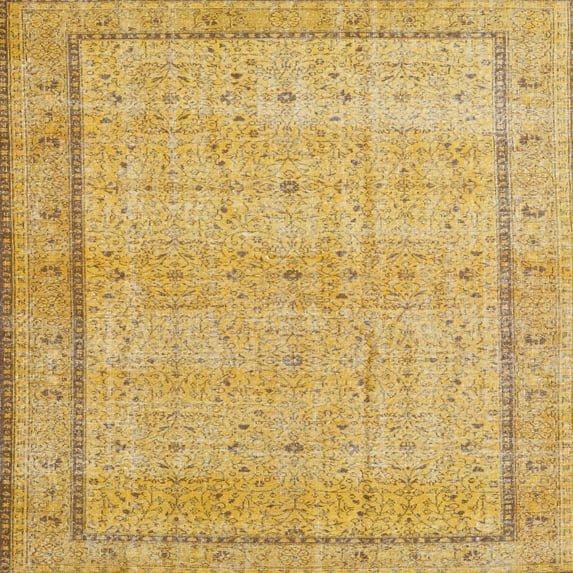 Hero image 0 of Ahgly Company Machine Washable Indoor Square Traditional Chrome Gold Yellow Area Rugs, 4' Square, 0 of 7
