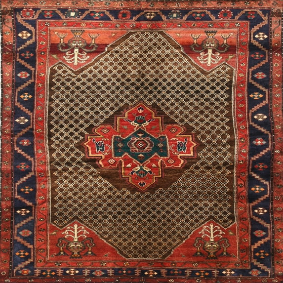 Hero image 0 of Ahgly Company Machine Washable Indoor Square Traditional Saffron Red Area Rugs, 4' Square, 0 of 7