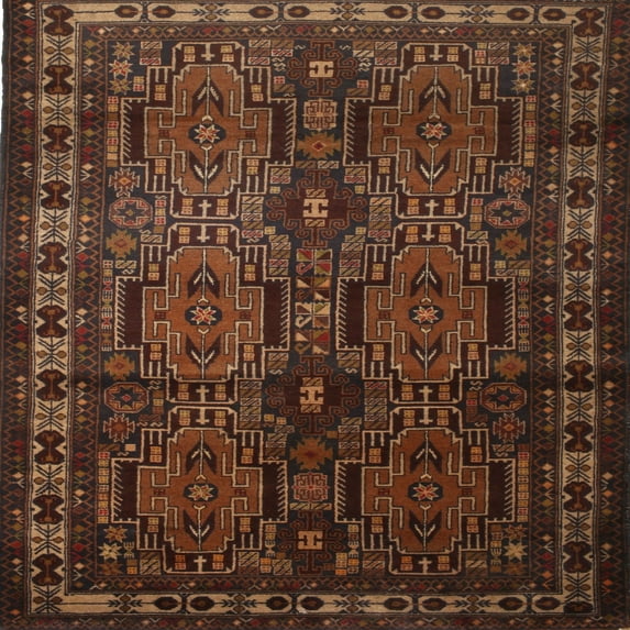 Hero image 0 of Ahgly Company Machine Washable Indoor Square Traditional Sienna Brown Area Rugs, 5' Square, 0 of 7