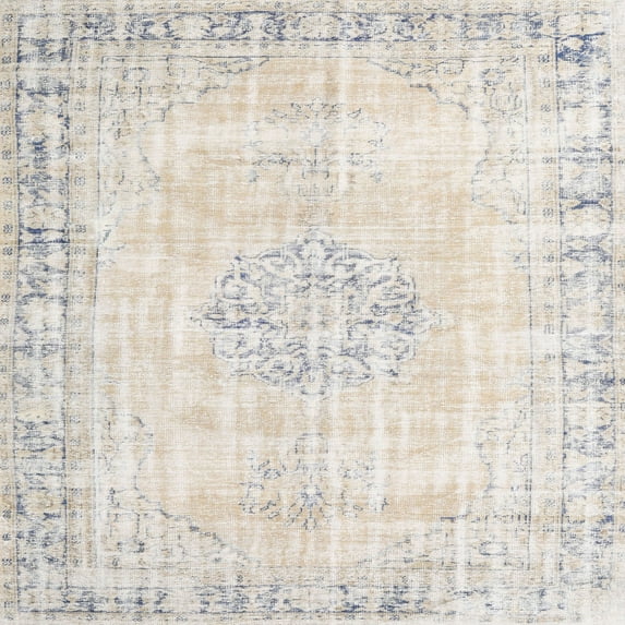 Hero image 0 of Ahgly Company Machine Washable Indoor Square Traditional Silver Pink Area Rugs, 4' Square, 0 of 7