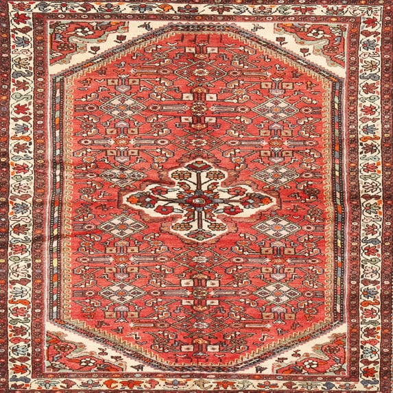 Ahgly Company Machine Washable Indoor Square Traditional Tangerine Pink Area Rugs, 3' Square