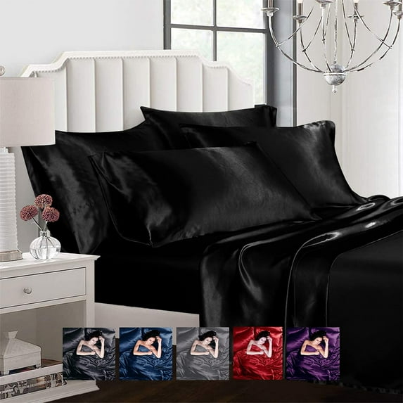 Ahmedani Linen 6 Pcs Luxury Super Soft Silky Satin Sheets Duvet Cover Bed Set with 1 Duvet Cover, 1 Deep Pocket Fitted Sheet, 4 Pillowcases, Queen Size BlackAhmedani Linen 6 Pcs Luxury Super Soft Silky Satin Sheets Duvet Cover Bed Set 1 Cover Deep Pocket Fitted Sheet 4 Pillowcases Queen Size BlackAhmedani Linen Sexy Satin Sheets 6 Pcs Queen King Bedding Set 1 Duvet Cover 1 Fitted Sheet 4 Pillow Cases Many Colors Navy Queen