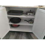 This is exactly what I was looking for to have extra storage for my pots and pans. I have a huge paella pan that didn't fit in any of my kitchen cabinets but now it finally has a home! The product comes in one, super heavy box (110lbs!) so you might need help carrying it in. I paid someone to put it together because I didn't want to mess it up. They had no issues with it's assembly. He said the quality is good with clear, easy directions. Every piece was present and accounted for and in perfect condition. There are 2 locking castors to keep it in place that seem to do the job. I'd definitely buy again and recommend without hesitation.