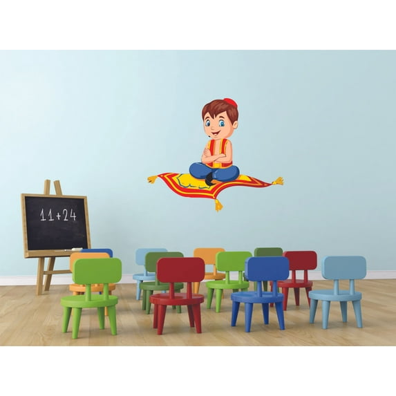 Hero image 0 of Aladdin and Carpet Baby Cartoon Character Wall Art Decal Vinyl Sticker Girls Boy Room Bedroom Nursery Kindergarten House Home Wall Decor Removable Peel and Stick Durable Quality Sticker 30x15 inch, 0 of 1