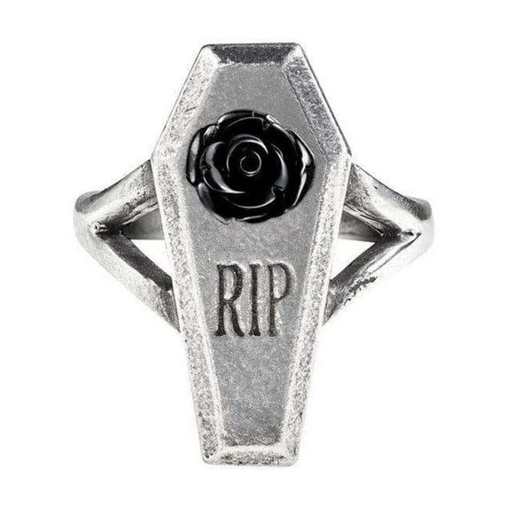 Alchemy Gothic R235T RIP Black Rose Ring - Size 9.5