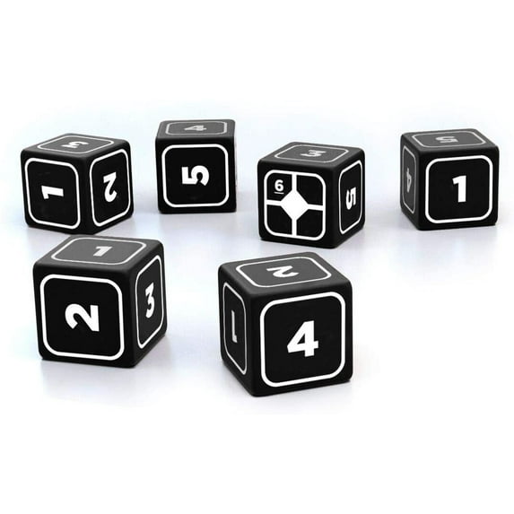 A set of ten engraved Base Dice, designed specifically for the ALIEN Roleplaying Game. These 16 mm special dice are designed to support the game mechanics but can be used as normal six-sided dice as well. Made in Poland.
