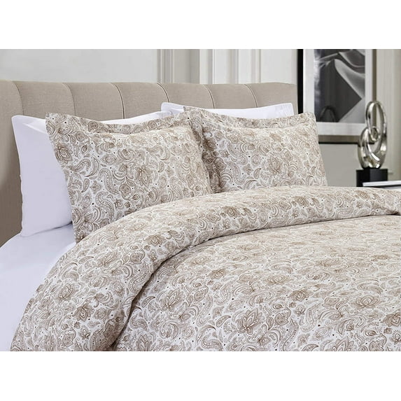 All Season Suitable 2-Piece Duvet Set, Paisley Design, Corner Ties & Button Closure, Matching Sham Included, Twin/Twin XL, Taupe