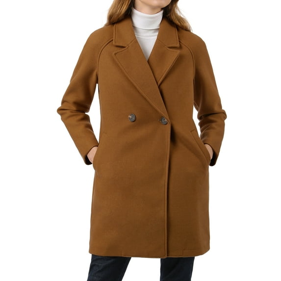 Hero image 0 of Allegra K Women's Double Breasted Lapel Raglan Long Sleeve Mid Length Overcoat L Brown, 0 of 9