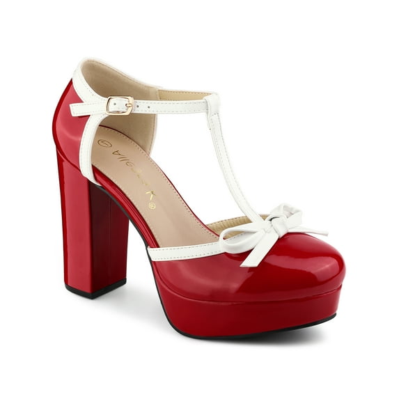 Hero image 0 of BLISSFUL STEP Valentine's Women's Platform T Strap Bow Vintage Block Heels Pumps Red 6, 0 of 8