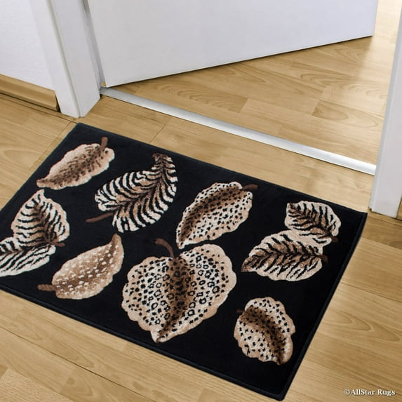 Allstar Black Double Shot Drop-Stitch Carving Exotic Nature Themed Floral Leaf Prints. Woven Doormat Accent Rug (2' x 3' 3")