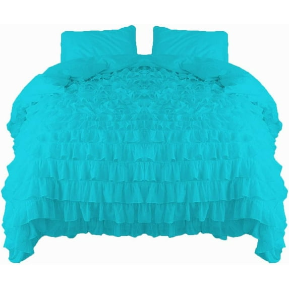 Amay 800 Thread Count 1 Piece Premium Waterfall Ruffle Duvet Cover 100% Organic Cotton King Plus (120X120 ) Turquoise Solid