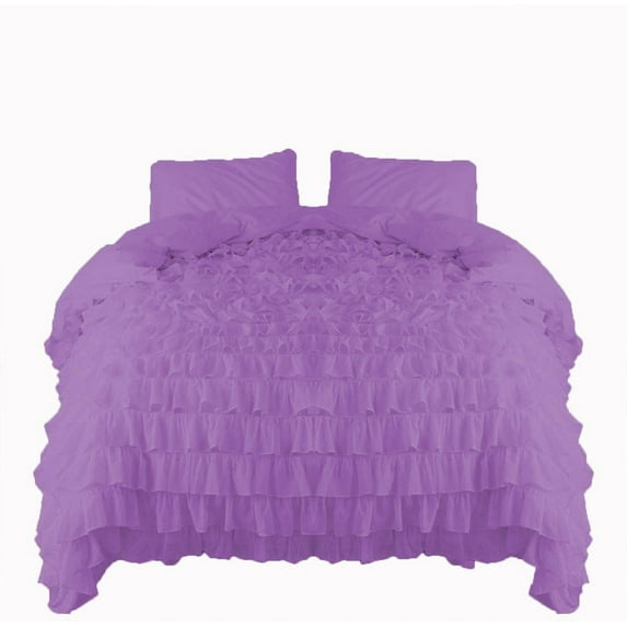Hero image 0 of Amay 800 Thread Count 1 Piece Premium Waterfall Ruffle Duvet Cover 100% Organic Cotton Oversized King ( 120x 98 )Purple Solid, 0 of 5