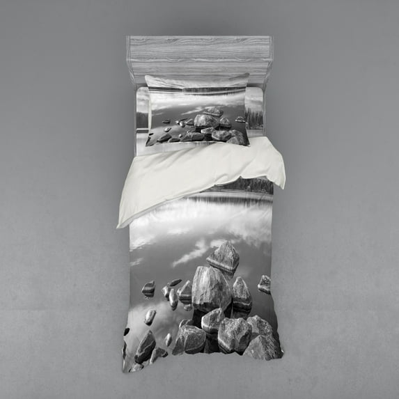 Hero image 0 of Ambesonne Autumn Bedding Set 3 Pcs, Rock in Lake Shore, Twin XL, Black White, 0 of 3