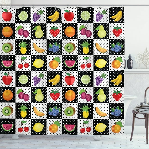 Ambesonne Black and White Shower Curtain, Kitchen Fruits, 69"Wx75"L, MulticolorAmbesonne Black and White Shower Curtain Kitchen Fruits 69 Wx75 L MulticolorAmbesonne Black and White Shower Curtain Kitchen Fruits 69 Wx84 L MulticolorAmbesonne Black and White Shower Curtain Kitchen Fruits 69 Wx70 L Multicolor