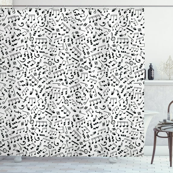 Hero image 0 of Ambesonne Black and White Shower Curtain, Notes and Chord, 69"Wx84"L, Black White, 0 of 3