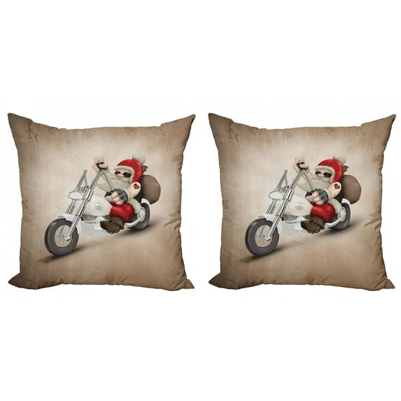 Hero image 0 of Ambesonne Christmas Throw Pillow Cover 2 Pack, Cool Santa on Bike, 24", Red and Cream, 0 of 2