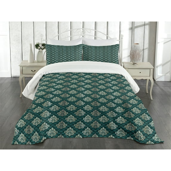 Ambesonne Damask Quilted Bedspread Set 3 Pcs, French Rococo Motifs, King Size, Dark Teal EggshellAmbesonne Damask Quilted Bedspread Set 3 Pcs French Rococo Motifs King Size Dark Teal EggshellAmbesonne Damask Quilted Bedspread Set 2 Pcs French Rococo Motifs Twin Size Dark Teal EggshellAmbesonne Damask Quilted Bedspread Set 3 Pcs French Rococo Motifs Queen Size Dark Teal Eggshell