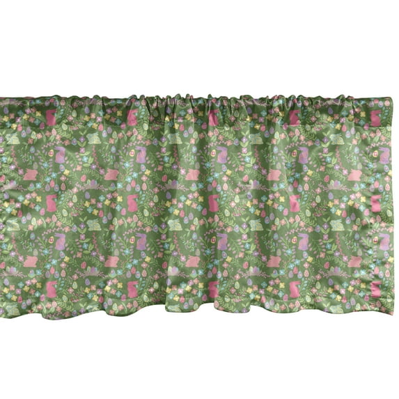 Hero image 0 of Ambesonne Easter Valance Pack of 2, Pastel Flowers Eggs Rabbits, 54"X18", Reseda Green Multicolor, 0 of 4