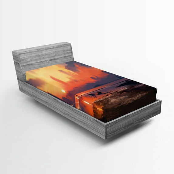 Ambesonne Fantasy Fitted Sheet, Sandy Skyscraper, Twin XL Size, Orange Blue