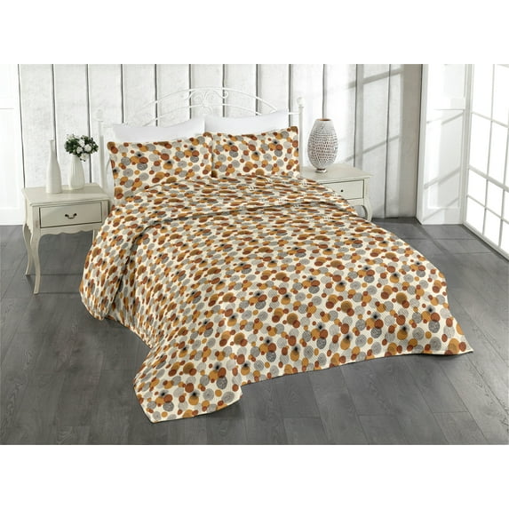 Hero image 0 of Ambesonne Geometric Quilted Bedspread Set 3 Pcs, Retro Rounds Circles Art, Queen, Amber Cinnamon Beige, 0 of 4