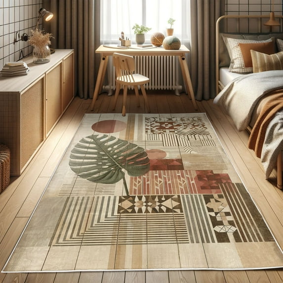Hero image 0 of Ambesonne Modern Boho Decorative Rug Carpet, Mid Century Monstera, 4' X 5' 5", Redwood Pale Camel, 0 of 5