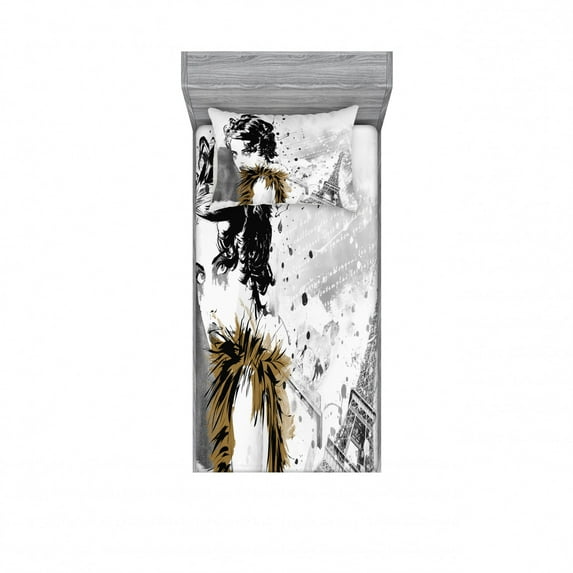 Hero image 0 of Ambesonne Modern Fitted Sheet & Pillow Sham Set, Fashion Model Paris Girl, Twin, Grey White, 0 of 3