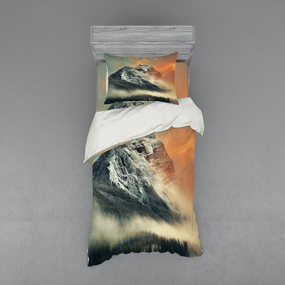 Ambesonne Nature Bedding Set 3 Pcs, Snowy Peak Mountain, Twin, Grey OrangeAmbesonne Nature Bedding Set 3 Pcs Snowy Peak Mountain Twin Grey OrangeNational Parks Duvet Cover Set Snowy Mountains Sunset Hazy Weather Yoho Alberta Image Print Bedding Set Shams Fitted Sheet 3 Sizes AmbesonneAmbesonne Nature Bedding Set 4 Pcs Snowy Peak Mountain Queen Grey Orange
