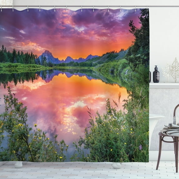 Ambesonne Nature Shower Curtain, Sunset Reflection River, 69"Wx75"L, Orange Green PurpleAmbesonne Nature Shower Curtain Sunset Reflection River 69 Wx75 L Orange Green PurpleAmbesonne Nature Shower Curtain Sunset Reflection River 69 Wx84 L Orange Green PurpleMountain In Wyoming Colorful Sunset Reflection On River Nature Photography Bathroom Accessories 69W X 70L Inches By Ambesonne
