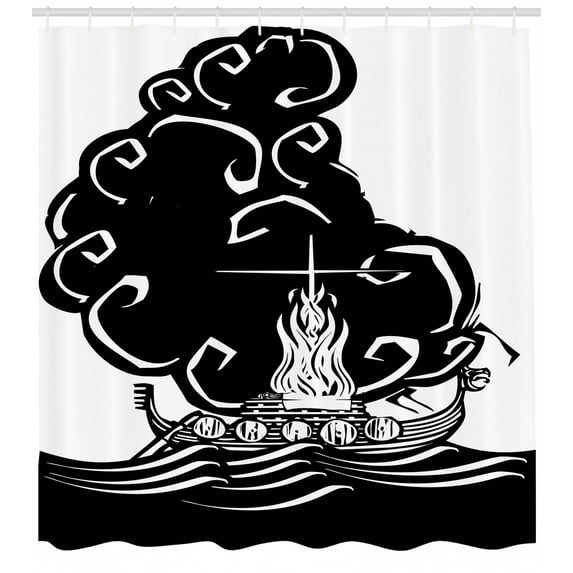 Hero image 0 of Ambesonne Nordic Shower Curtain, Viking Burning Longboat, 69"Wx70"L, White and Black, 0 of 3
