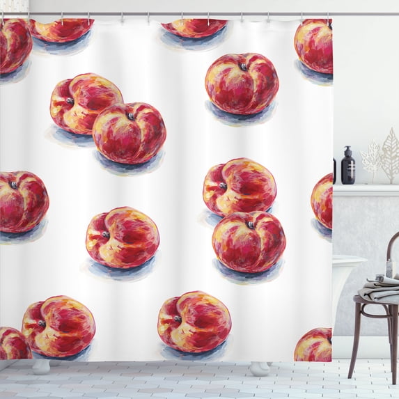 Hero image 0 of Ambesonne Peach Shower Curtain, Realism Summer Fruit Painting, 69"Wx84"L, Dark Pink Mustard, 0 of 3