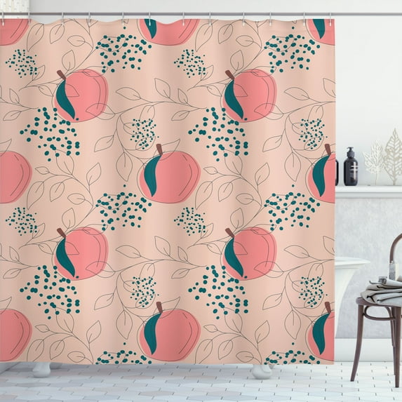 Hero image 0 of Ambesonne Peach Shower Curtain, Sketch of Fruits Dots Leaves, 69"Wx75"L, Dark Teal Pastel Pink, 0 of 3