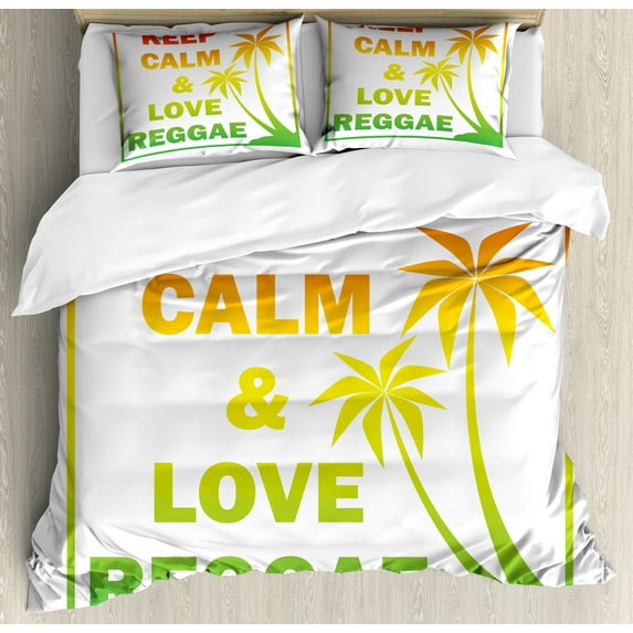 Hero image 0 of Ambesonne Rasta Duvet Cover Set, Keep Calm Words Reggae, 2-Calking, Pale Green Yellow, 0 of 7