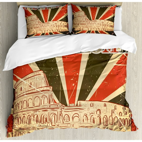 Hero image 0 of Ambesonne Saying Duvet Cover Sets, Italian Rome Lettering, 2-Queen, Red Dark Green and White, 0 of 7