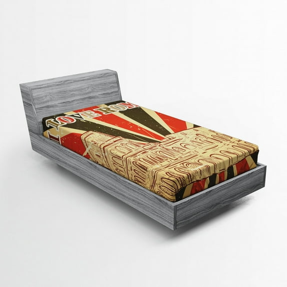 Hero image 0 of Ambesonne Saying Fitted Sheet, Italian Rome Lettering, Twin XL Size, Red Dark Green and White, 0 of 2