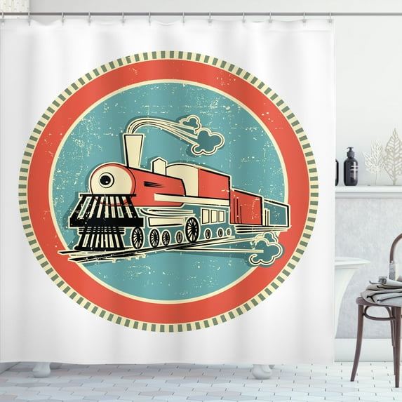 Hero image 0 of Ambesonne Steam Engine Shower Curtain, Retro Train Art, 69"Wx75"L, Turquoise Salmon Ivory, 0 of 5