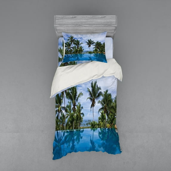 Ambesonne Tropical Bedding Set 3 Pcs, Infinity Pool Palm, Twin, Blue Green WhiteAmbesonne Tropical Bedding Set 3 Pcs Infinity Pool Palm Twin Blue Green WhiteAmbesonne Tropical Bedding Set 4 Pcs Infinity Pool Palm Queen Blue Green WhiteAmbesonne Tropical Bedding Set 3 Pcs Infinity Pool Palm Twin XL Blue Green White