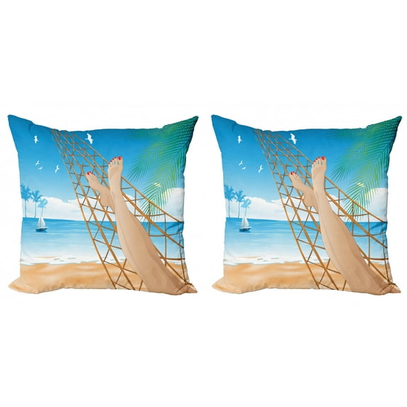 Hero image 0 of Ambesonne Tropical Throw Pillow Cover 2 Pack, Hawaiian Ocean Hammock, 16", Cream and Blue, 0 of 6